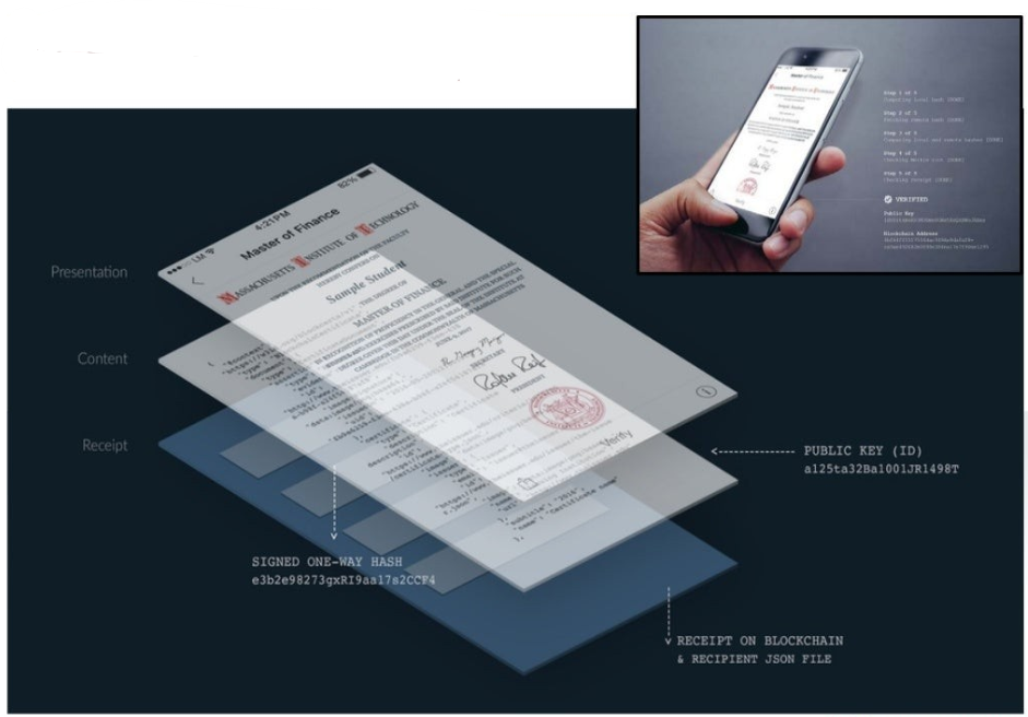 학위증 적절하게 hash하고 서명(총장 개인키)한 결과가 블록체인에 저장된 결과와 일치하는지 확인.