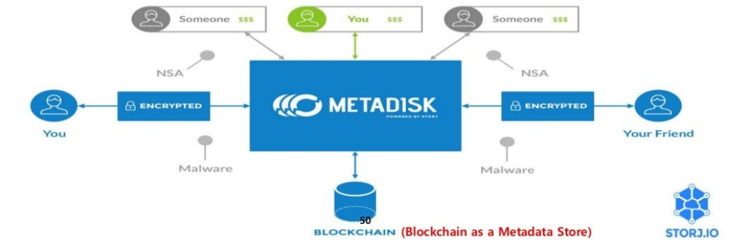 암호화된 파일을 저장하고 해당 파일에 대한 메타데이터를 블록체인에 저장함으로써 파일내용이 노출되는 것을 방지함.