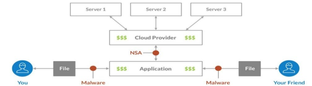 사용자의 파일이 클라우드 공급자를 통해서 서버에 올라가는 과정에서 Malware, NSA등의