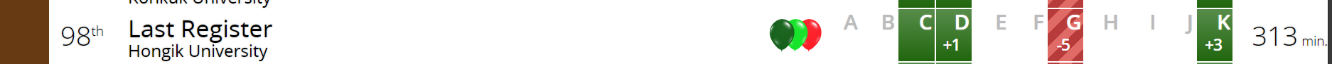 홍대 다닐 때는 우물 안 개구리였지만 ICPC 본선에 와보니 또 새로운 세상이 있는 것 같다.