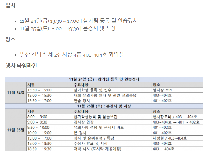본선은 11월 25일(토), 예비소집은 11월 24일(금)이었다.