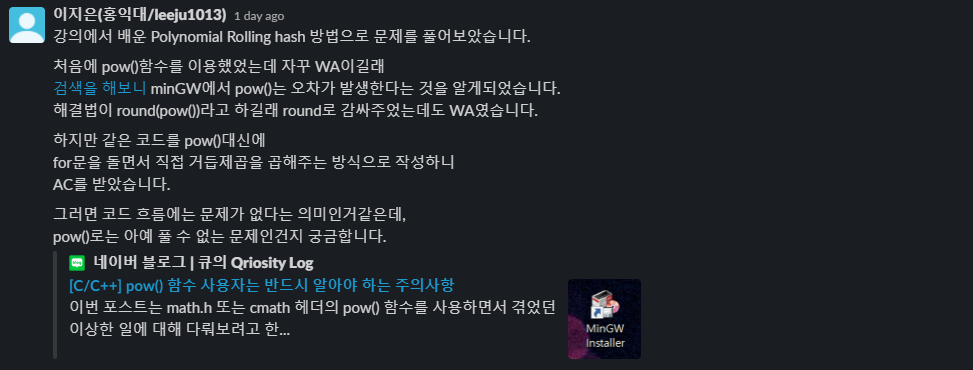 2022.01.16 - [PS/Algorithm] - [알고리즘 개념정리] 2. 문자열 (Polynomial Rolling hash)