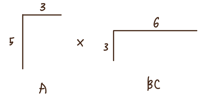 A(BC)에 필요한 곱셈 연산의 수는 3×2×6 + 5×3×6 = 36 + 90 = 126번이다.