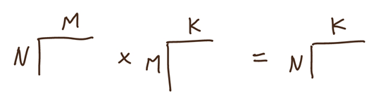 크기가 N×M인 행렬, 크기가 M×K인 행렬을 곱하면 크기가 N×K인 행렬이 되고