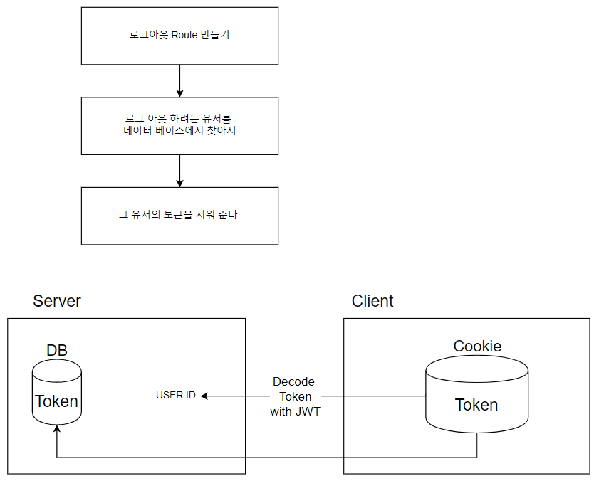 따라서 로그아웃 할 때는 그냥 DB에서 유저의 토큰을 지워주기만 하면 인증이 안돼서 로그인 기능이 풀리게 된다.