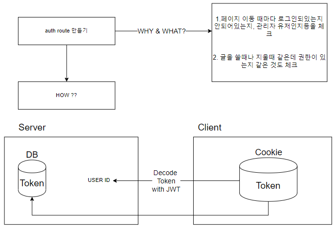 client입장에서는 토큰을 쿠키에 넣어주고, server입장에서는 user DB에 넣어준다.